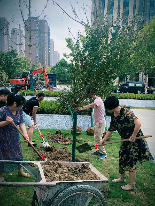 上午9時許,全體黨員準(zhǔn)時來到徽鹽世紀(jì)廣場商辦樓前,開始植樹活動?;顒蝇F(xiàn)場,黨員們不顧天氣炎熱,相互協(xié)作,配合默契,展現(xiàn)出一片熱火朝天的勞動場景。搬運樹苗、揮鍬挖坑、填土栽種……經(jīng)過1個多小時的努力,六株蔥郁的紫薇屹立于商辦樓前,為徽鹽世紀(jì)廣場增添了一道亮麗的風(fēng)景。隨后,大家還小心翼翼地在樹上系上“機關(guān)第一黨支部種植”的銘牌,以此要求全體黨員養(yǎng)護(hù)好這些樹木,號召大家自覺養(yǎng)成植綠護(hù)綠的良好習(xí)慣。