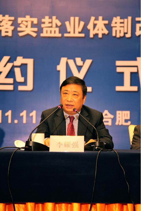安徽省鹽業(yè)總公司黨委書記、總經(jīng)理詹先豪在會(huì)上發(fā)言